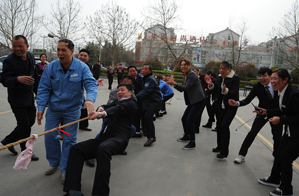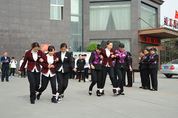3月24日下午迪尼斯開元店在停車場舉行了一場面目一新的春季運動會。此次運動會主要有行政部、后廚餐飲部、客房部、工程部、保安部等各部人員參與角逐,比賽項目主要有單車慢行、三人四足、趣味接力和拔河等。